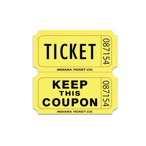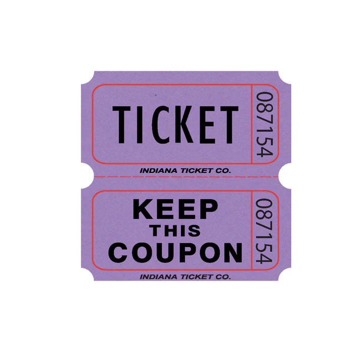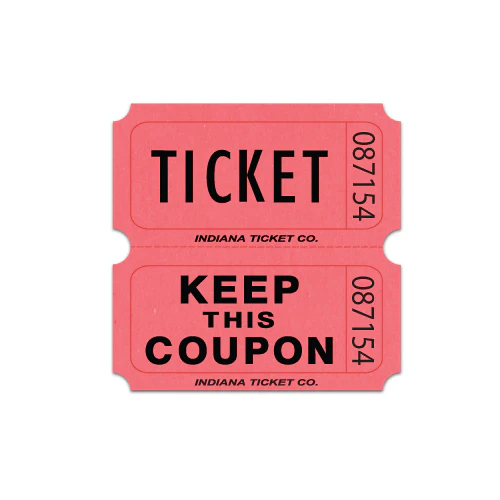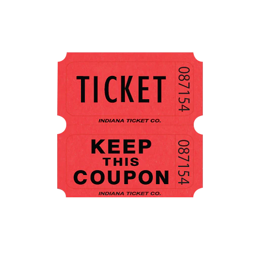 Double Roll Tickets have the classic “Ticket” and “Keep This Coupon” images. The back has a place for name, address and phone number.